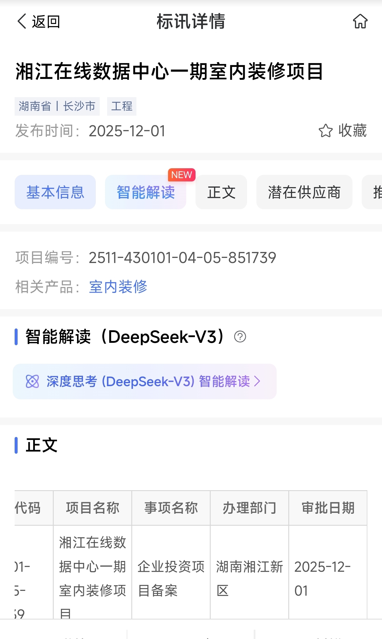 2025年8月,湘江在线母公司将湘江在线100%股权质押给了云漫易算,借款用于长沙的数据中心建设,湘江在线和龙宇同时启动招聘,云漫易算也在湖南成立了分公司。湘江在线数据中心项目2025年12月已经开始招标装修,最近公司办公地址已迁入$光环新网(SZ300383)$ 长沙云计算基地。2026湘江在线开工,润迅2期开工,龙宇算力版图继续扩大。
