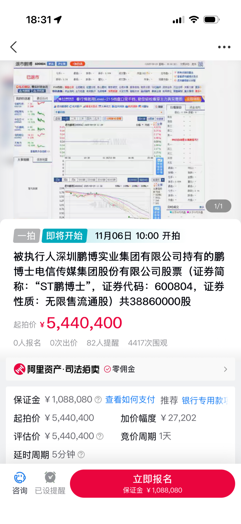 $鹏博士3(SZ400272)$ 拍卖快来了,看有没有人参与。能拍出去应该会带动下股价