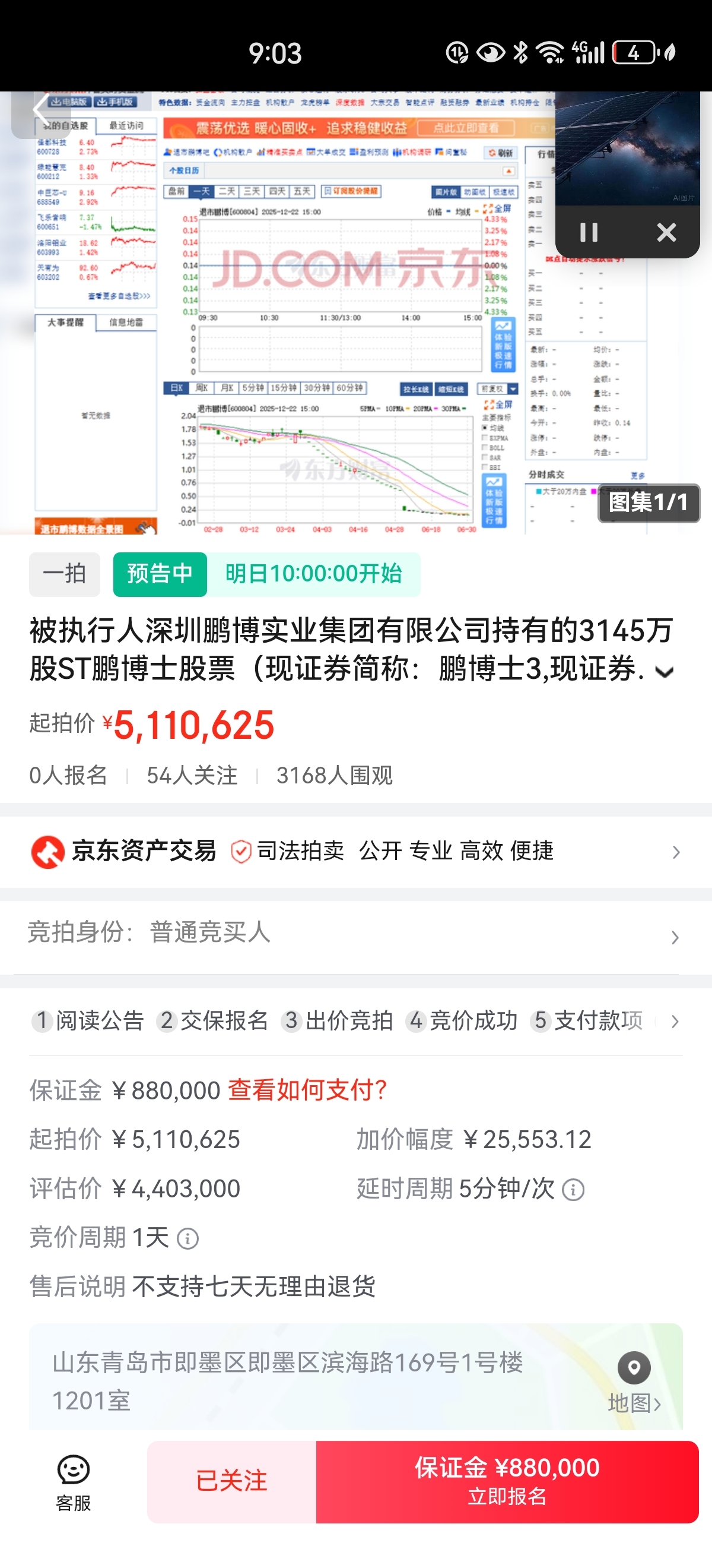 $鹏博士3(SZ400272)$ 起拍价由440调高至511,每股0.1625