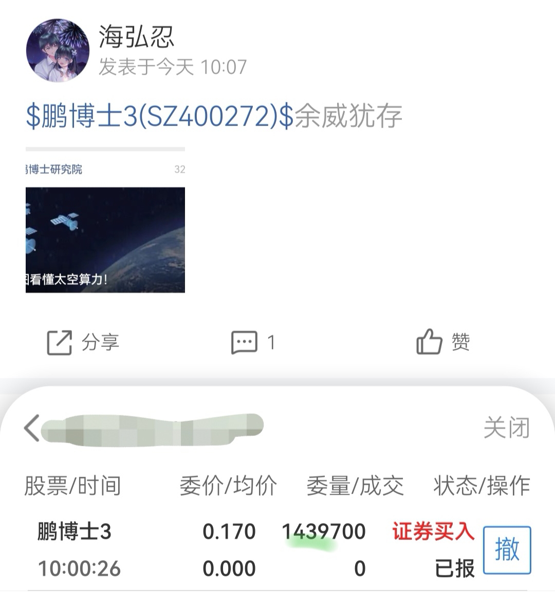 温馨提示: 1.根据《证券法》规定,禁止编造、传播虚假信息或者误导性信息,扰乱证券市场;2.用户在本社区发表的所有资料、言论等仅代表个人观点,与本网站立场无关,不对您构成任何投资建议。用户应基于自己的独立判断,自行决定证券投资并承担相应风险。《东方财富社区管理规定》