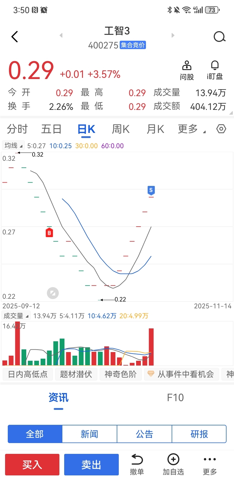 $工智3(SZ400275)$ 浪费一个半月赚你两分钱