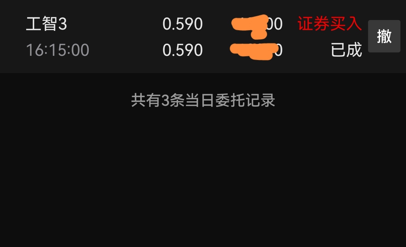 调出其他票,成功买入工智3。提示一下风险,绝不要全仓单吊一只有问题的股票。你投入