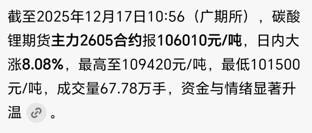 $海越3(SZ400276)$ 碳酸锂超过了10万