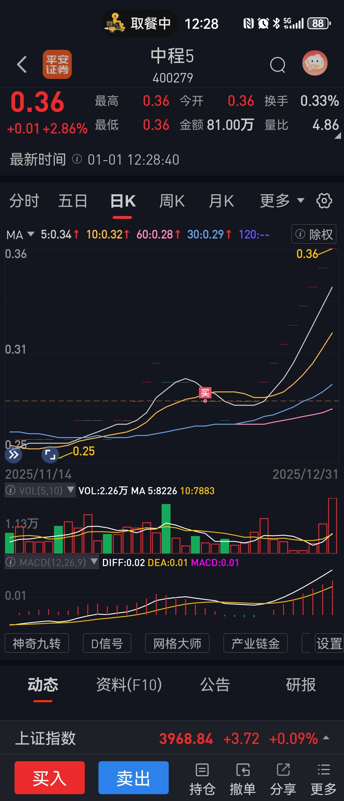 $中程5(SZ400279)$ 什么时候卖