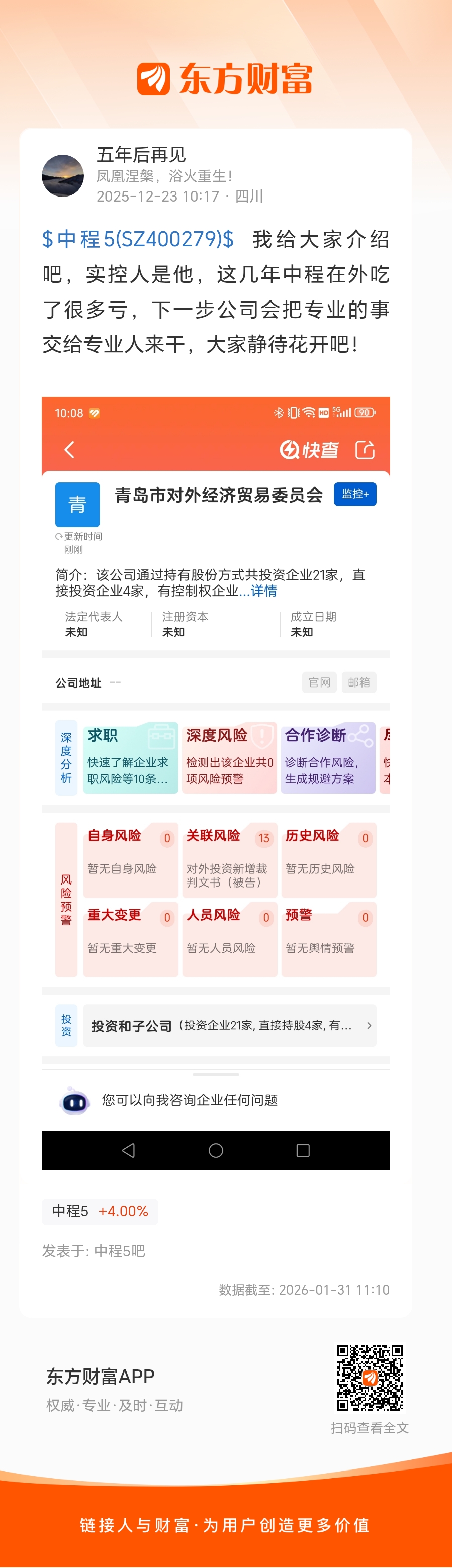 $中程5(SZ400279)$ 我给大家介绍吧,实控人是他,这几年中程在外吃了很多亏,下一步公司会把专业的事交给专业人来干,大家静待花开吧!