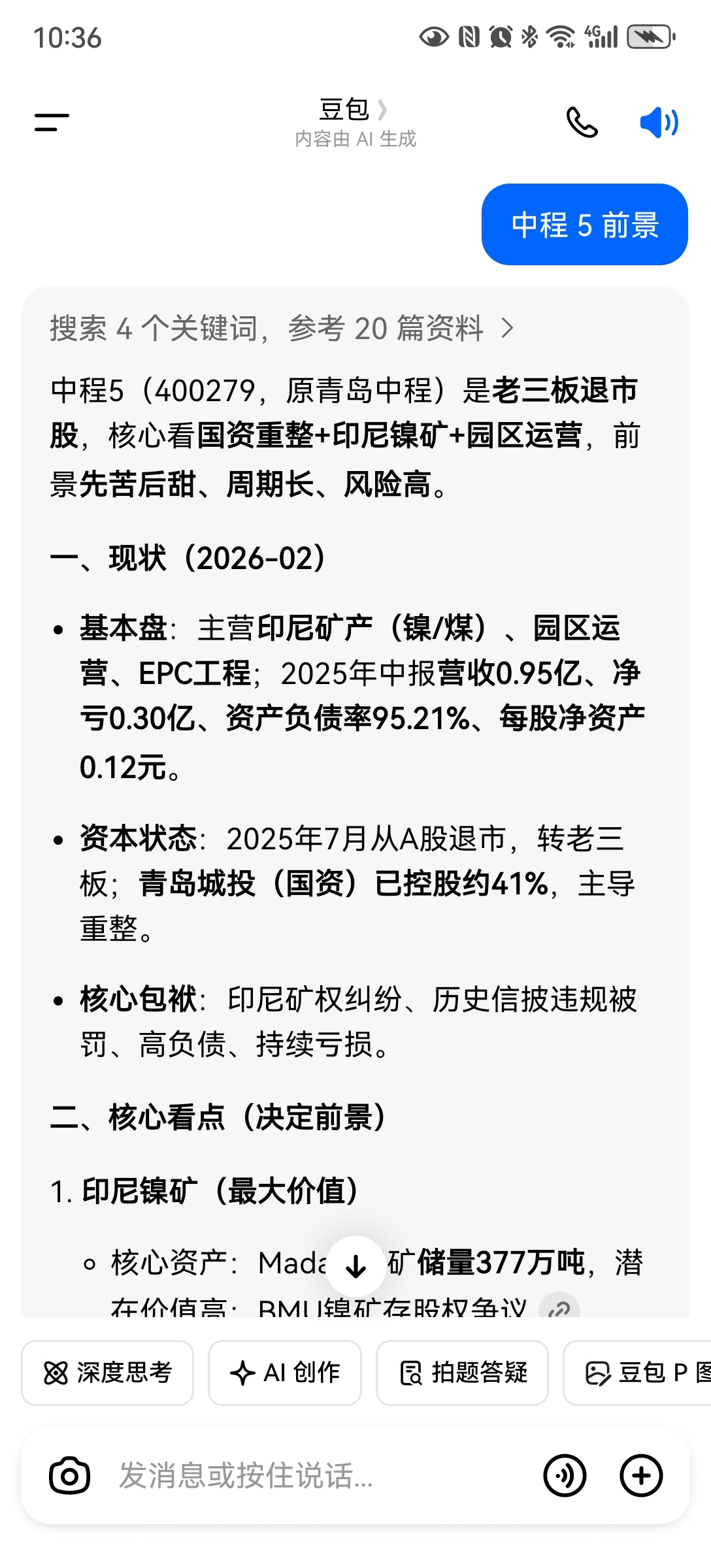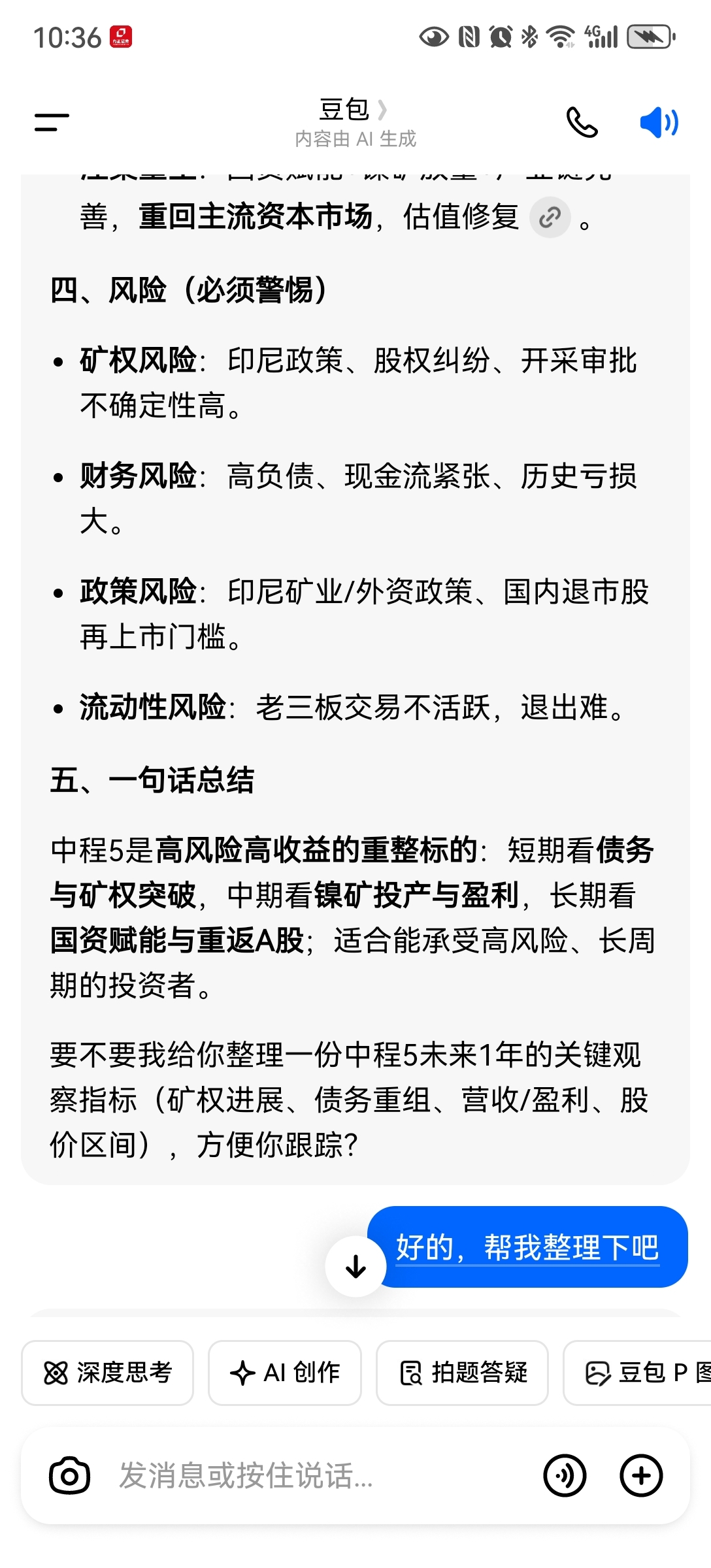 豆包提示中程5股票前景:先苦后甜,周期长,风险高