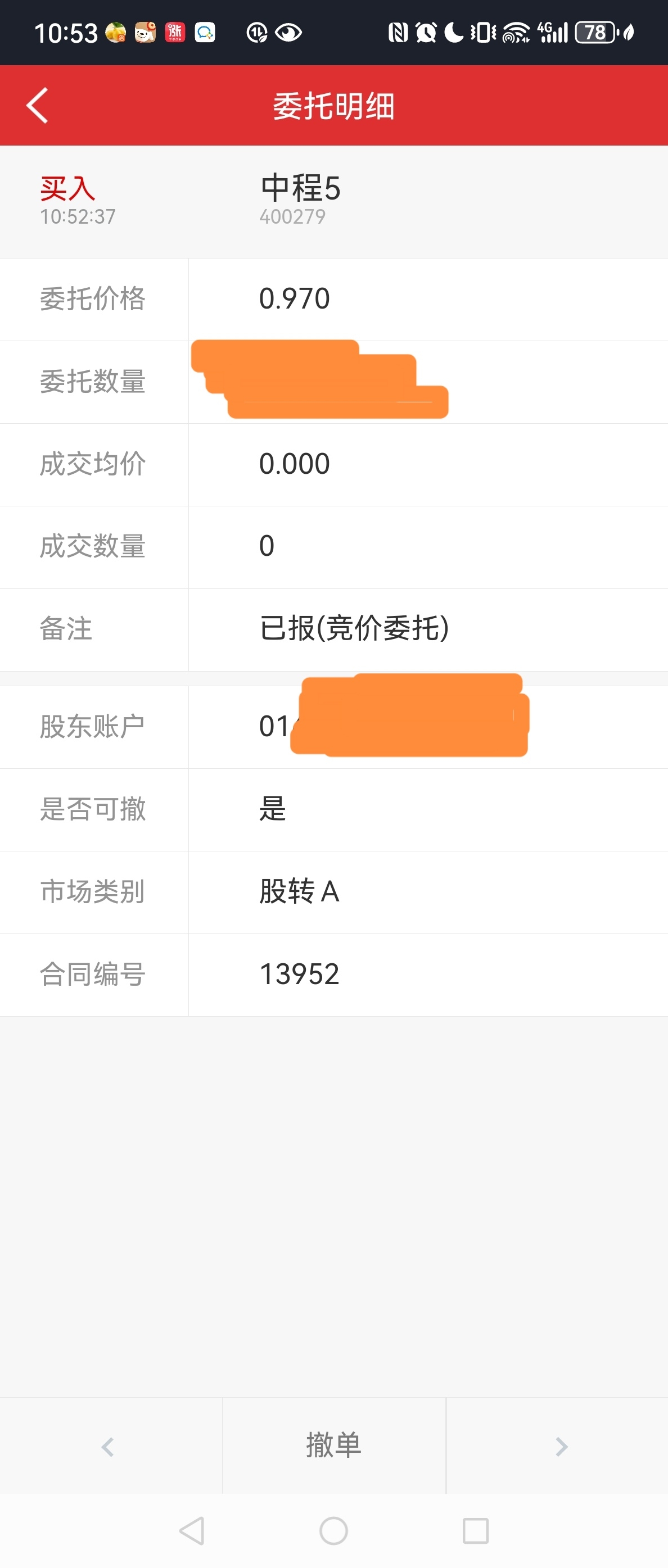 $中程5(SZ400279)$ 开盘没有跌停,我来挂个小买单,华泰单号13952。也不买多,留点钱看情况再定