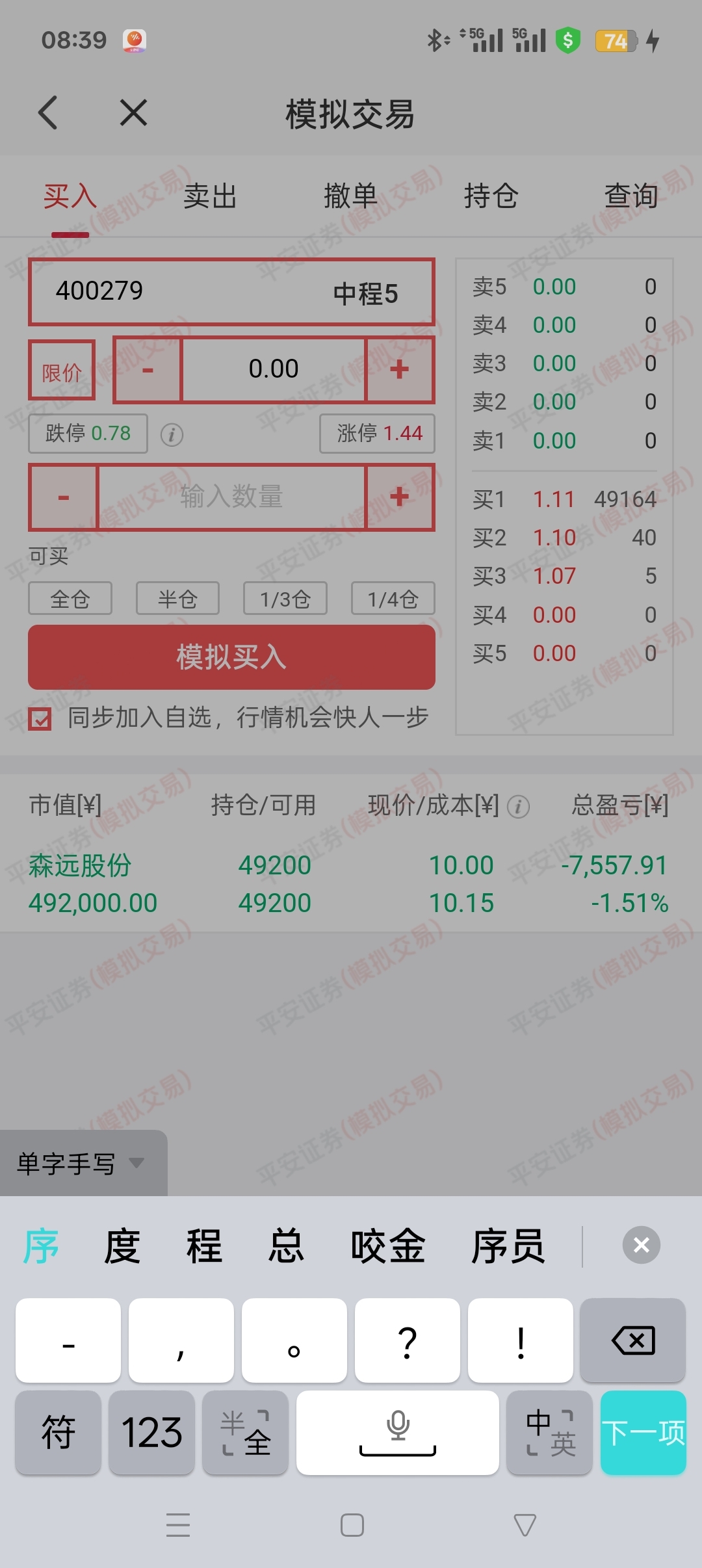 $中程5(SZ400279)$ 平安证券模拟交易截图,这个能说明什么?以前不是这样吗?