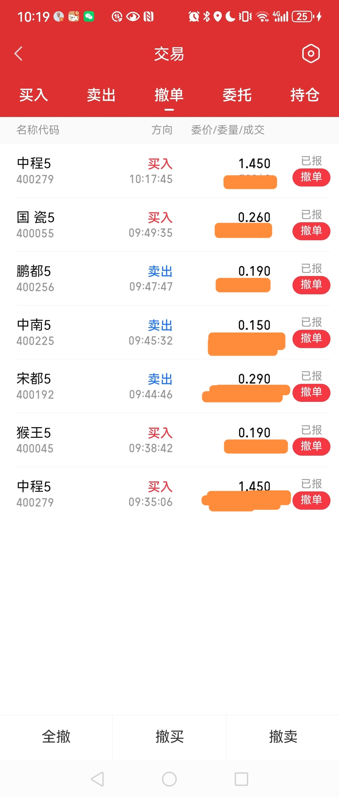 $中程5(SZ400279)$ 9:35和10:17涨停价位各挂了两个小小的买单,另外挂了2个其他5系的卖单。有买有卖,测试下自己对涨跌停交易的感觉,会分布在哪个区间。自定义X轴为持股信心,Y轴为预判今日的涨跌方向(本人小小散户一枚,自娱自乐,努力攒米中)