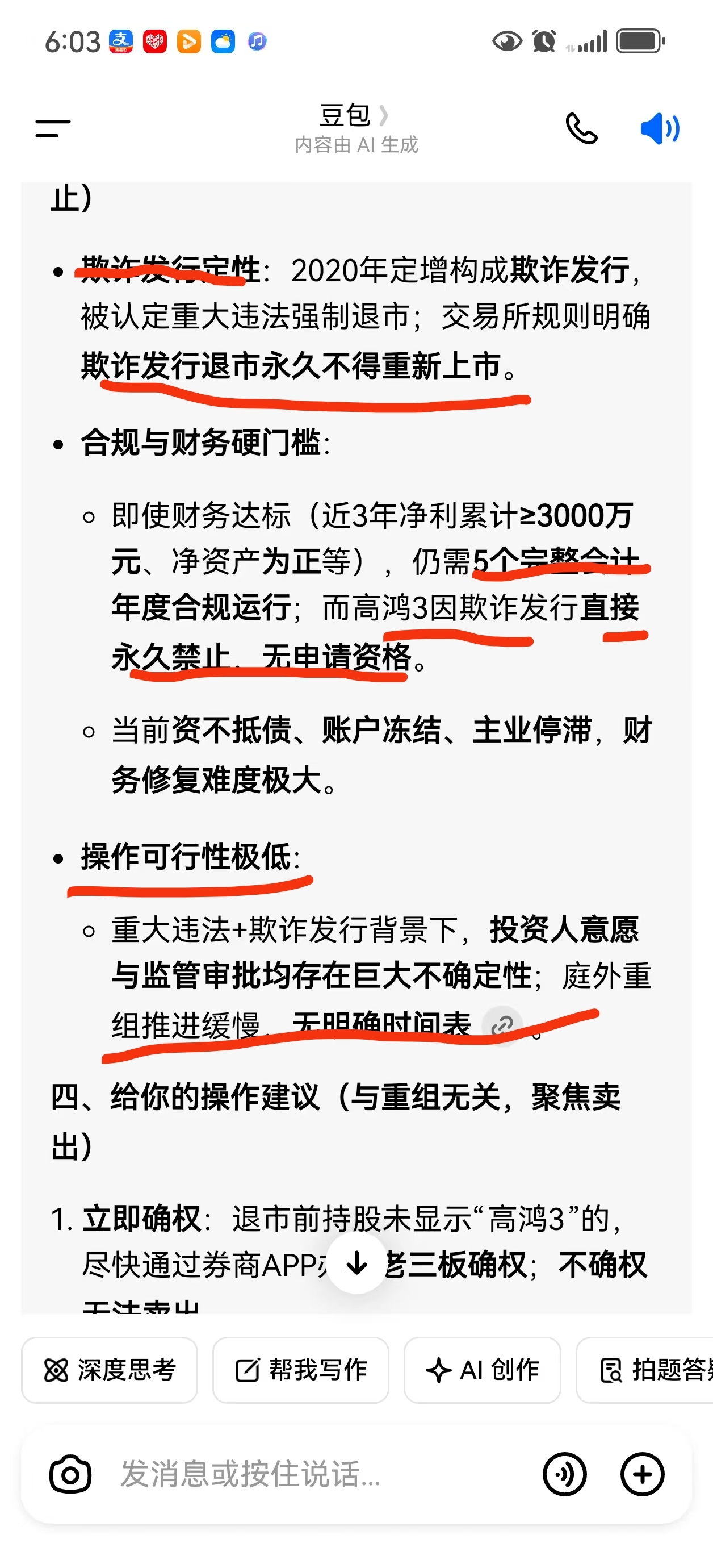 $高鸿3(SZ400283)$ 还能重返A股?绝对不可能