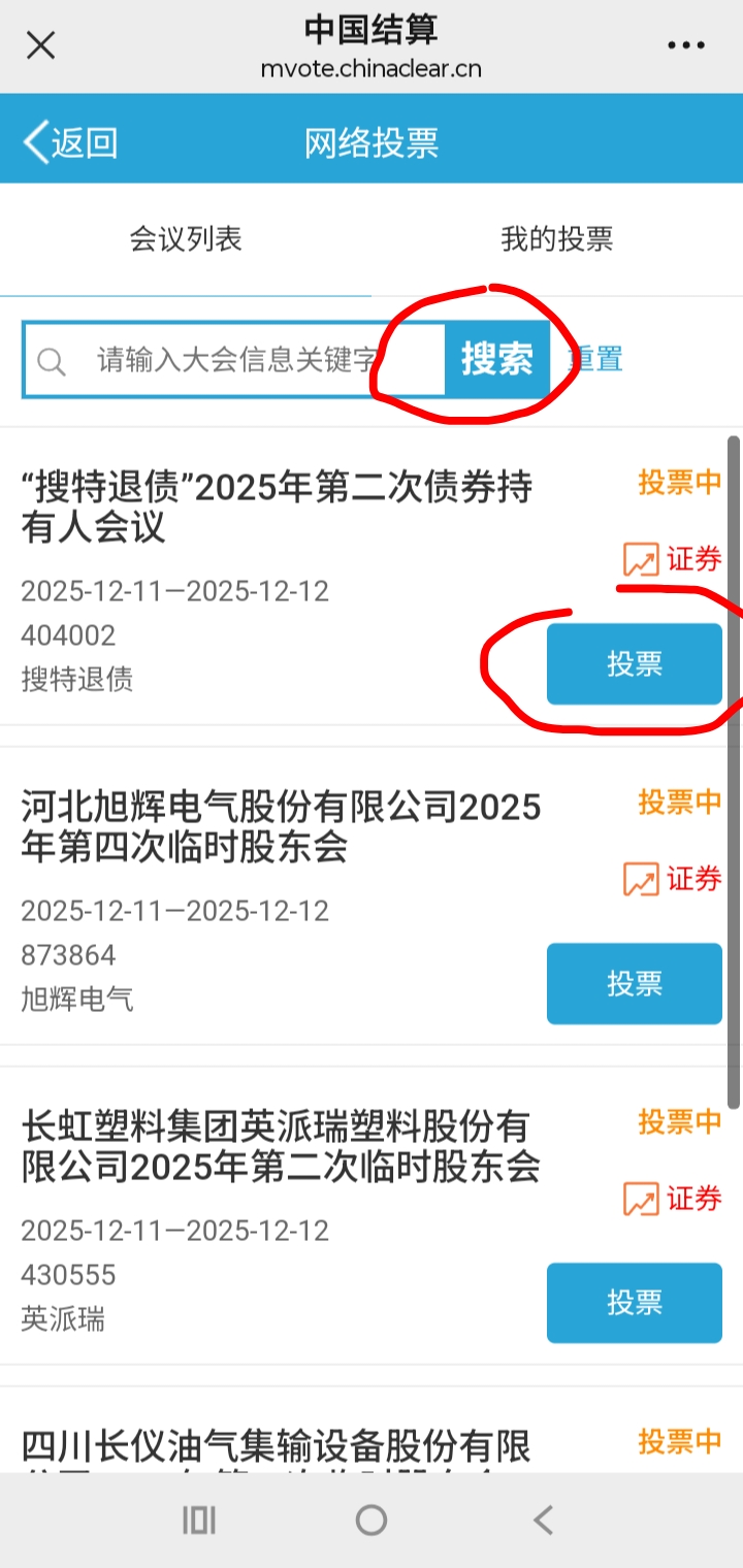 投票很简单,某信直接搜→中国结算中心,公众号,然后点→投票,再搜→搜特,然后→投