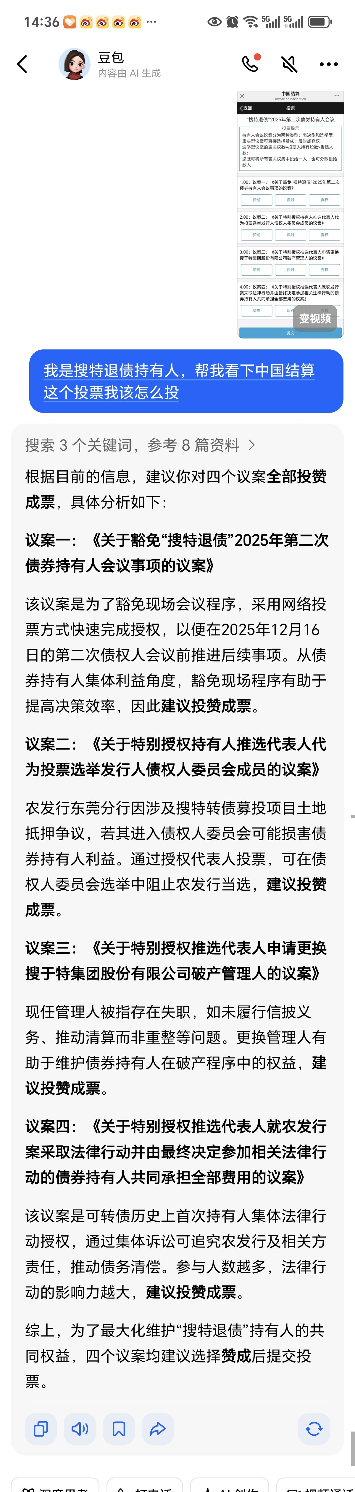 $搜特退债(SZ404002)$ 豆包解读的几个投票,已全部赞成,没投的抓紧啦!!!