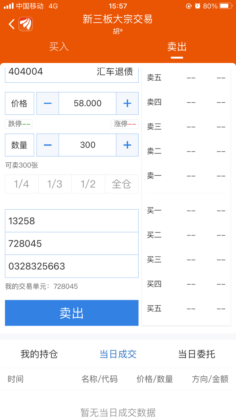 $汇车退债(SZ404004)$ 58出售300张,要的留号