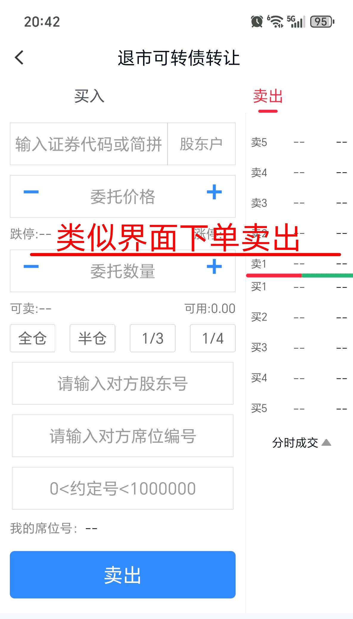 第一,在交易软件,新三板退市可转债卖出(或大宗交易),输入代码:404004,价格54.08,输入我的股东号:0151083435,席位号:724300 约定号:888