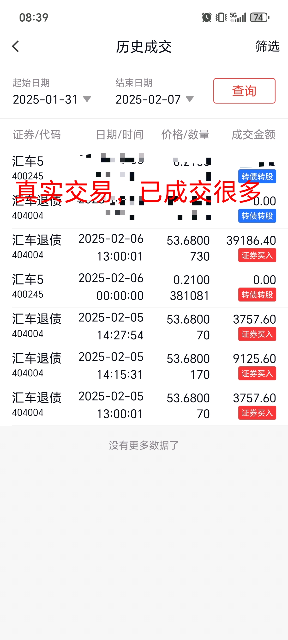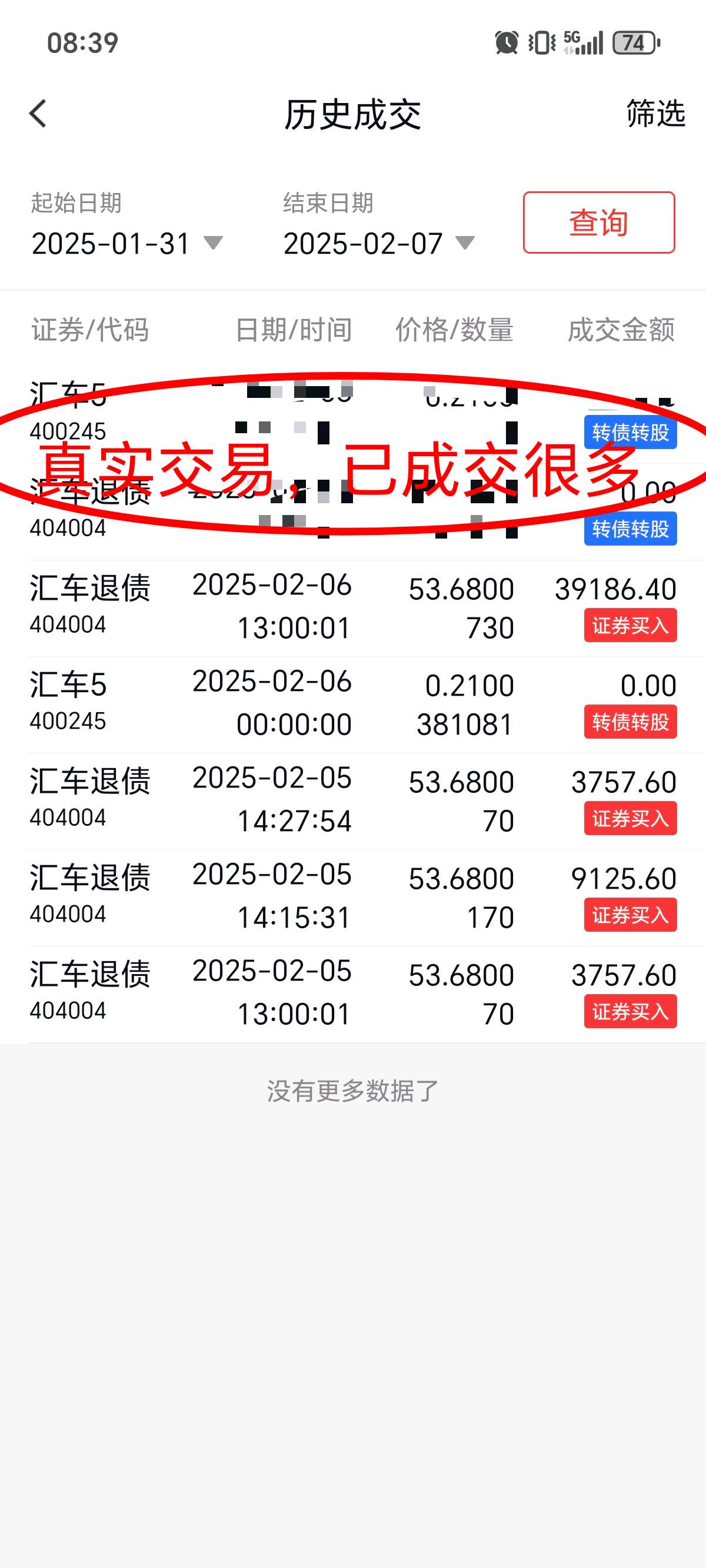 如愿意出,请直接下单,并发股东号,席位号,张数,我看到后马上下单。已成交很多,真实交易。$汇车退债(SZ404004)$$汇车5(SZ400245)$$广汇转债(SH110072)$