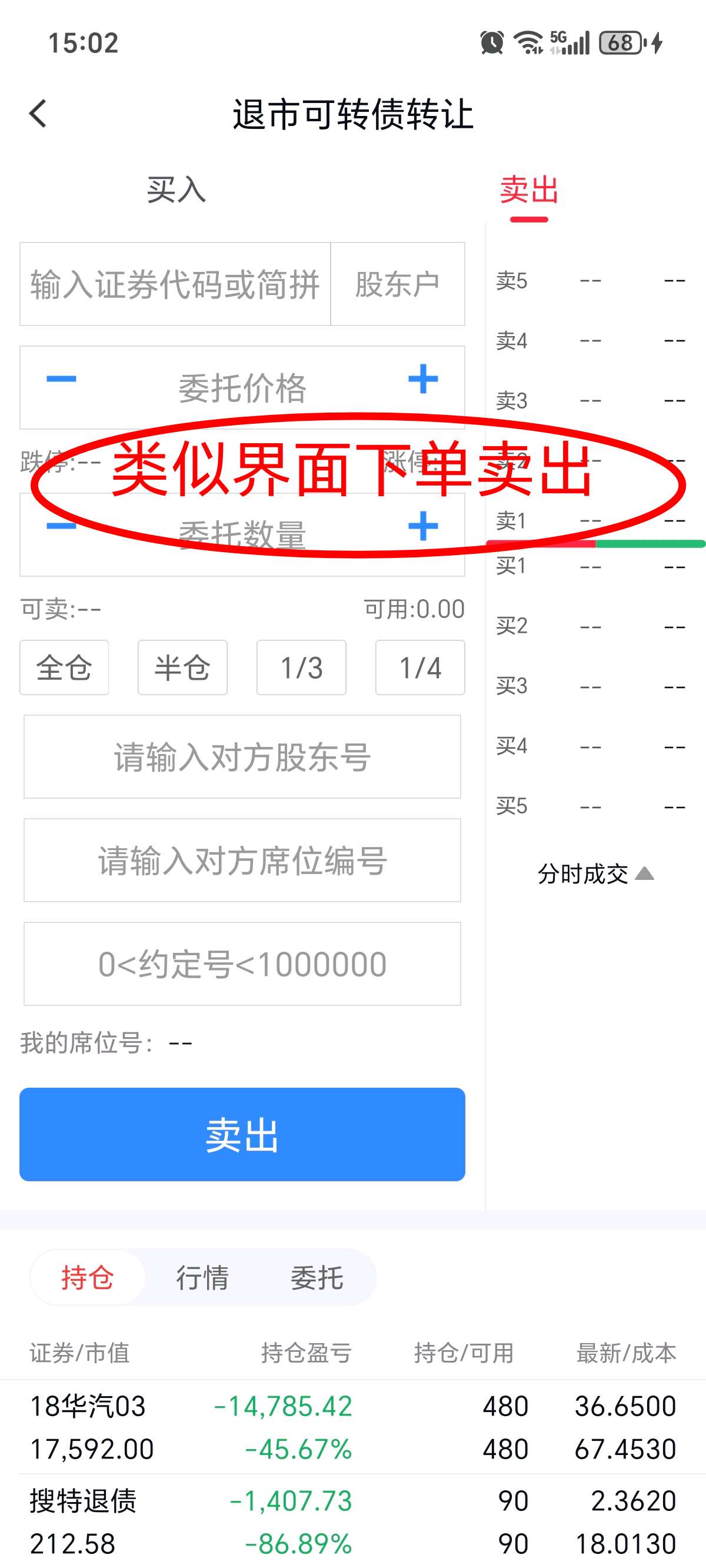 第一,在交易软件,新三板退市可转债卖出(或大宗交易),输入代码:404004,价格53.68,输入我的股东号:0151083435,席位号:724300 约定号:888