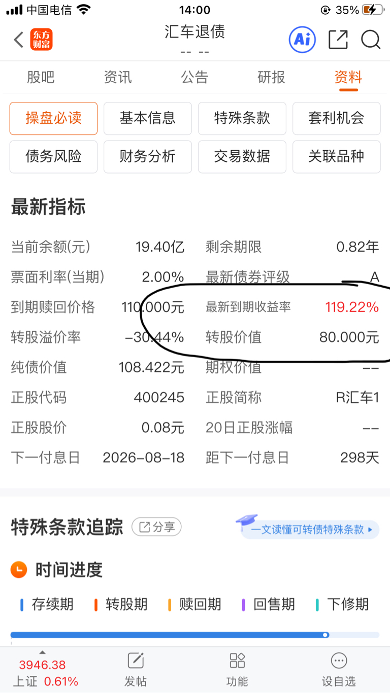$汇车退债(SZ404004)$ 汇车债低于80元卖出亏死你