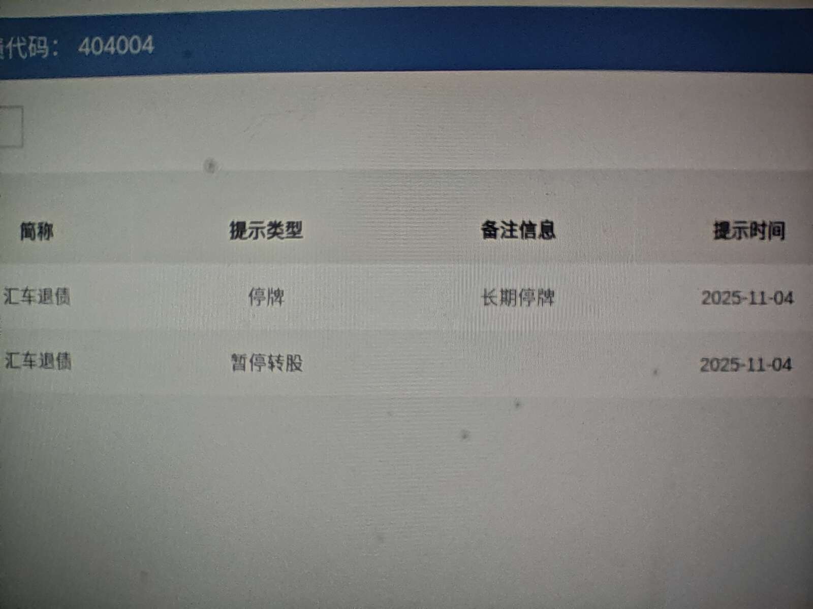 $汇车退债(SZ404004)$ 注意,网站上的用词是“长期停牌”。