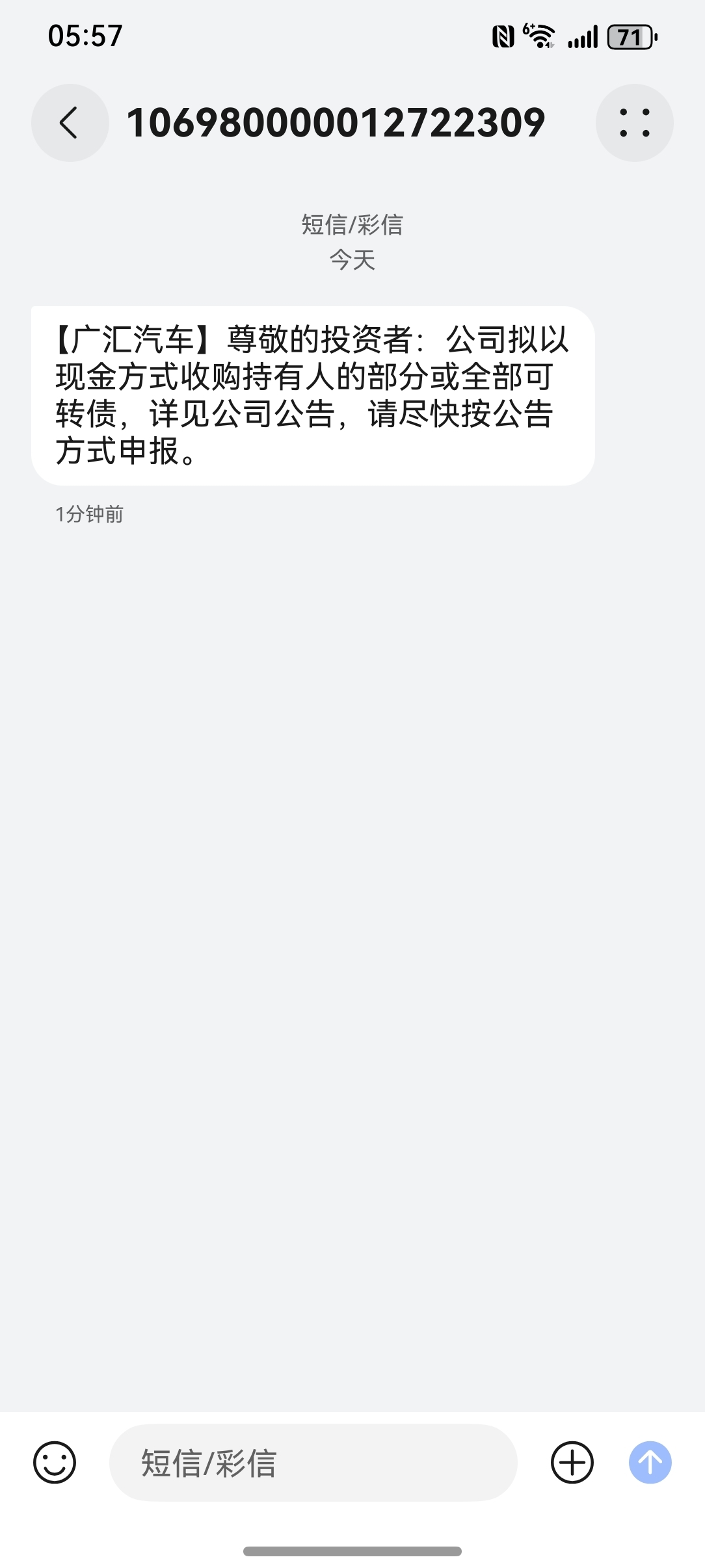 $汇车退债(SZ404004)$ 【广汇汽车】尊敬的投资者:公司拟以现金方式收购持有人的部分或全部可转债,详见公司公告,请尽快按公告方式申报。