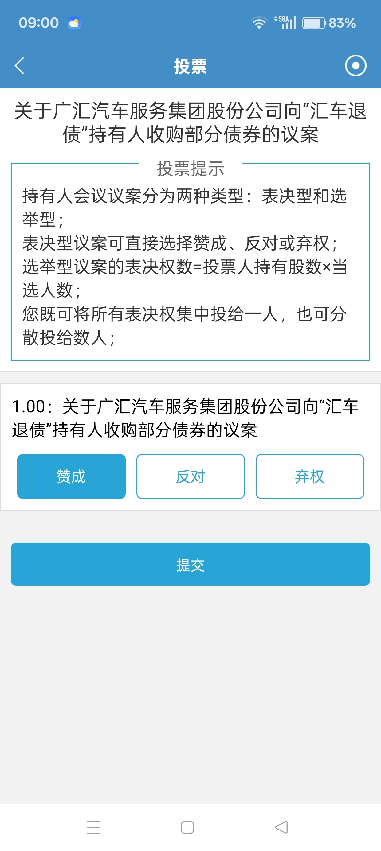 $汇车退债(SZ404004)$ 老教师第一时间,选择同意并提交。