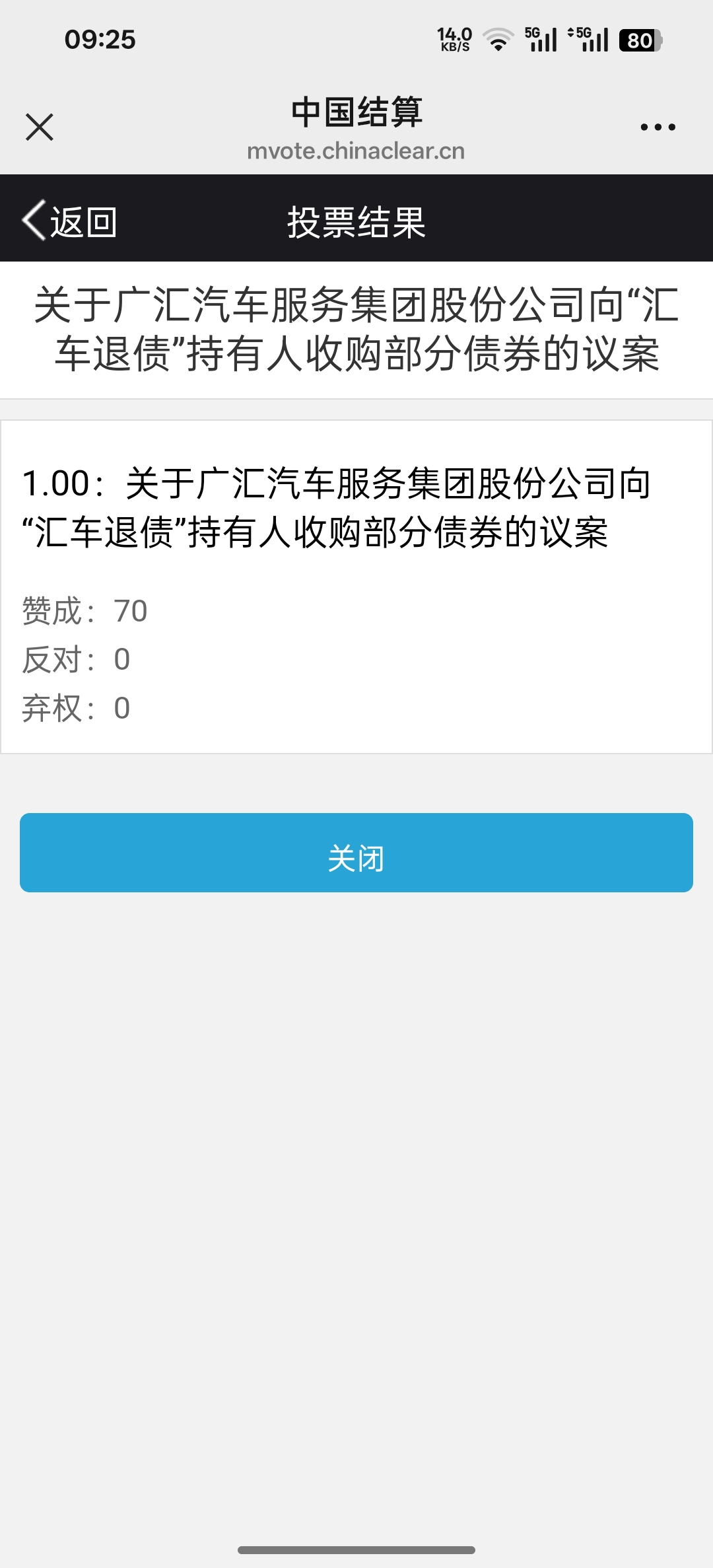 $汇车退债(SZ404004)$ 投完票就可以了吗?多久到账呀?