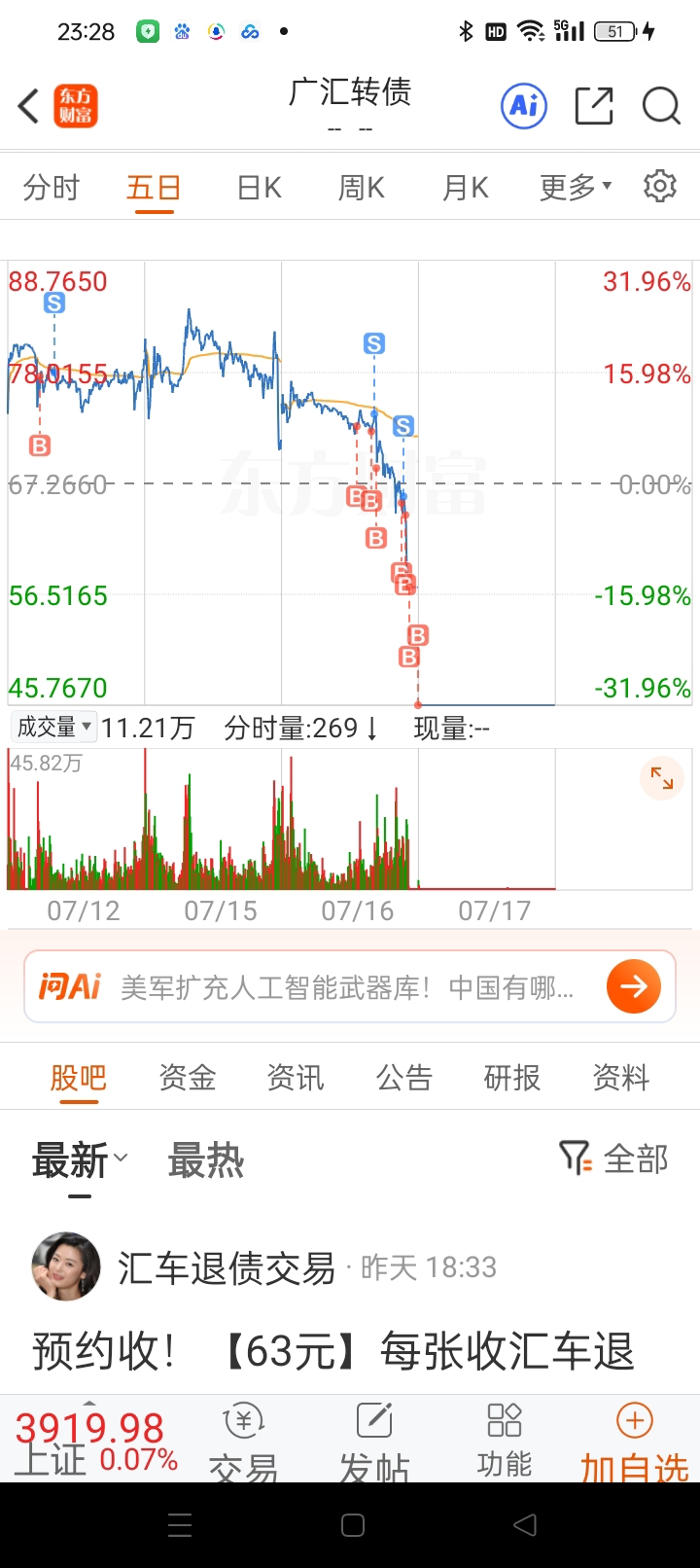 $汇车退债(SZ404004)$ 找回了当时的分时图