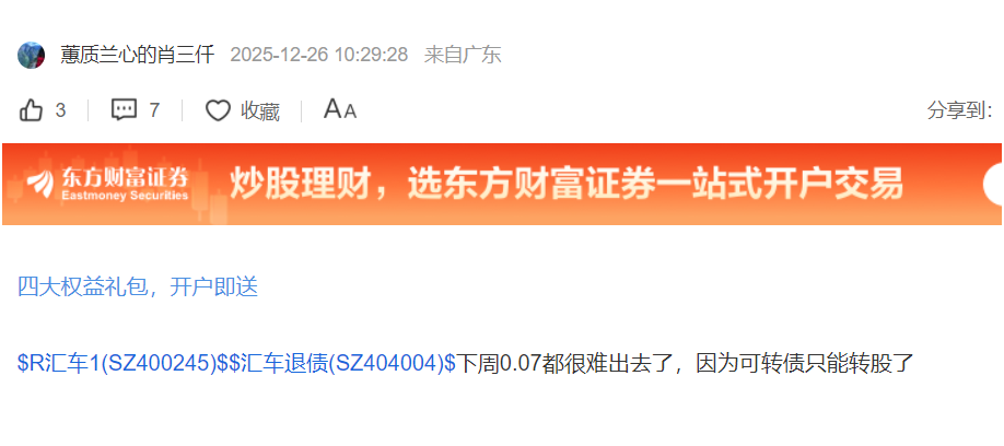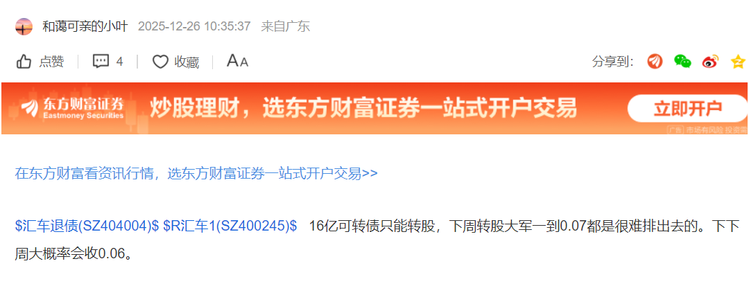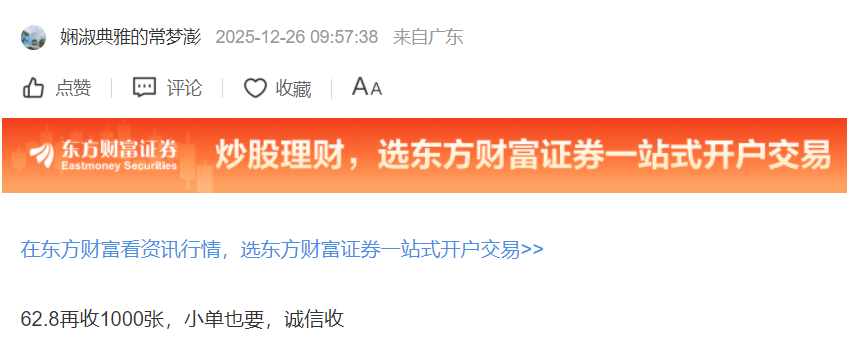 温馨提示: 1.根据《证券法》规定,禁止编造、传播虚假信息或者误导性信息,扰乱证券市场;2.用户在本社区发表的所有资料、言论等仅代表个人观点,与本网站立场无关,不对您构成任何投资建议。用户应基于自己的独立判断,自行决定证券投资并承担相应风险。《东方财富社区管理规定》