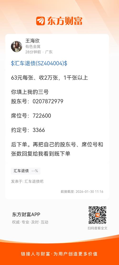 温馨提示: 1.根据《证券法》规定,禁止编造、传播虚假信息或者误导性信息,扰乱证券市场;2.用户在本社区发表的所有资料、言论等仅代表个人观点,与本网站立场无关,不对您构成任何投资建议。用户应基于自己的独立判断,自行决定证券投资并承担相应风险。《东方财富社区管理规定》