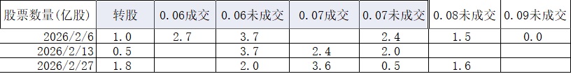 本周汇车1转股1.8亿,加上周0.07未成交2.0亿,总计3.8亿;成交3.6亿