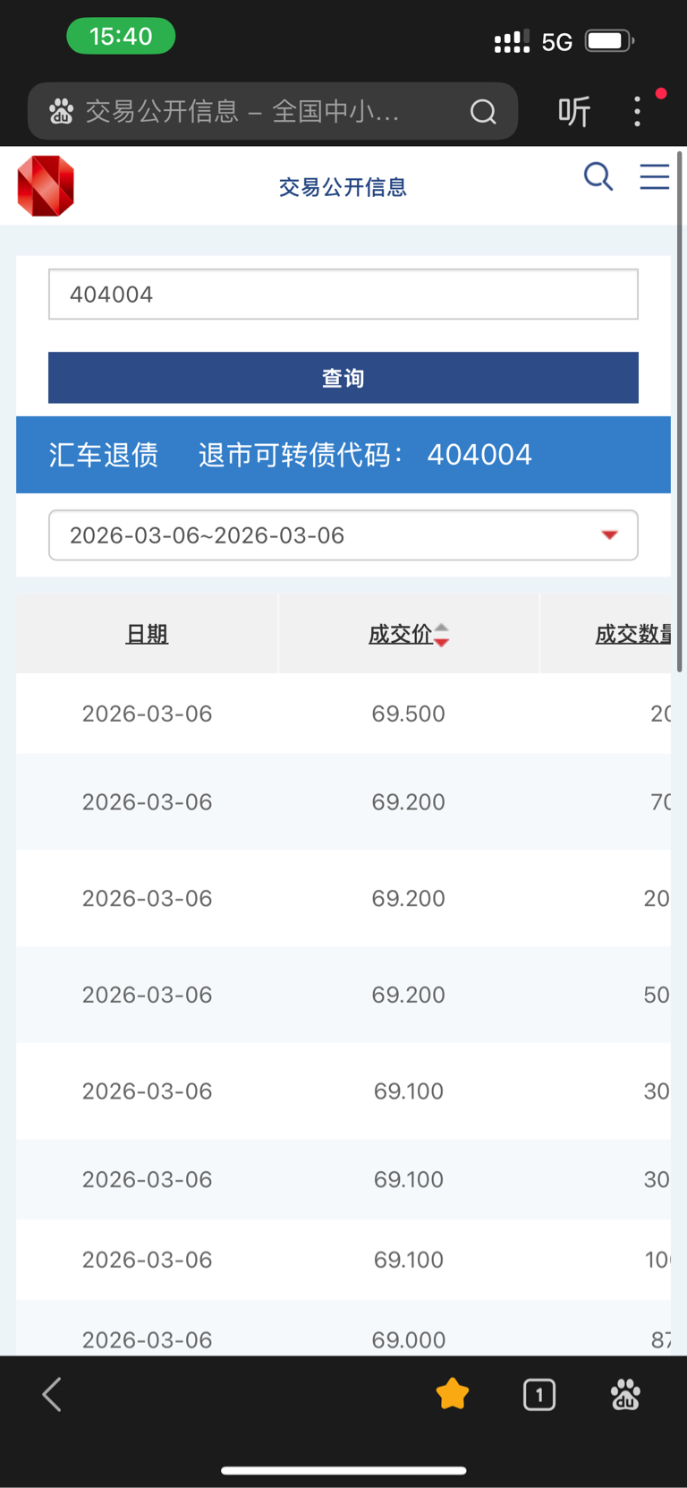 $汇车退债(SZ404004)$ 最高成交价69.5元一张