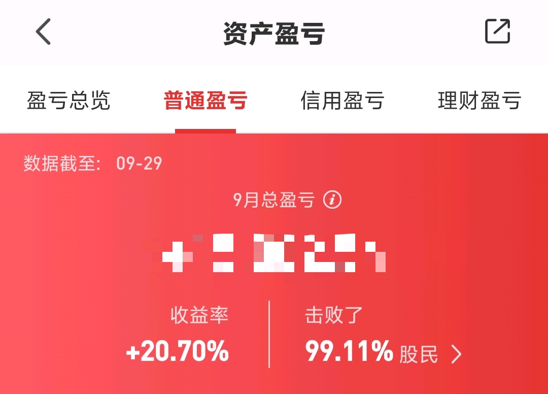承蒙主力厚爱,这两天也可以吃点零食,9月收官了,20.70%小小盈利。