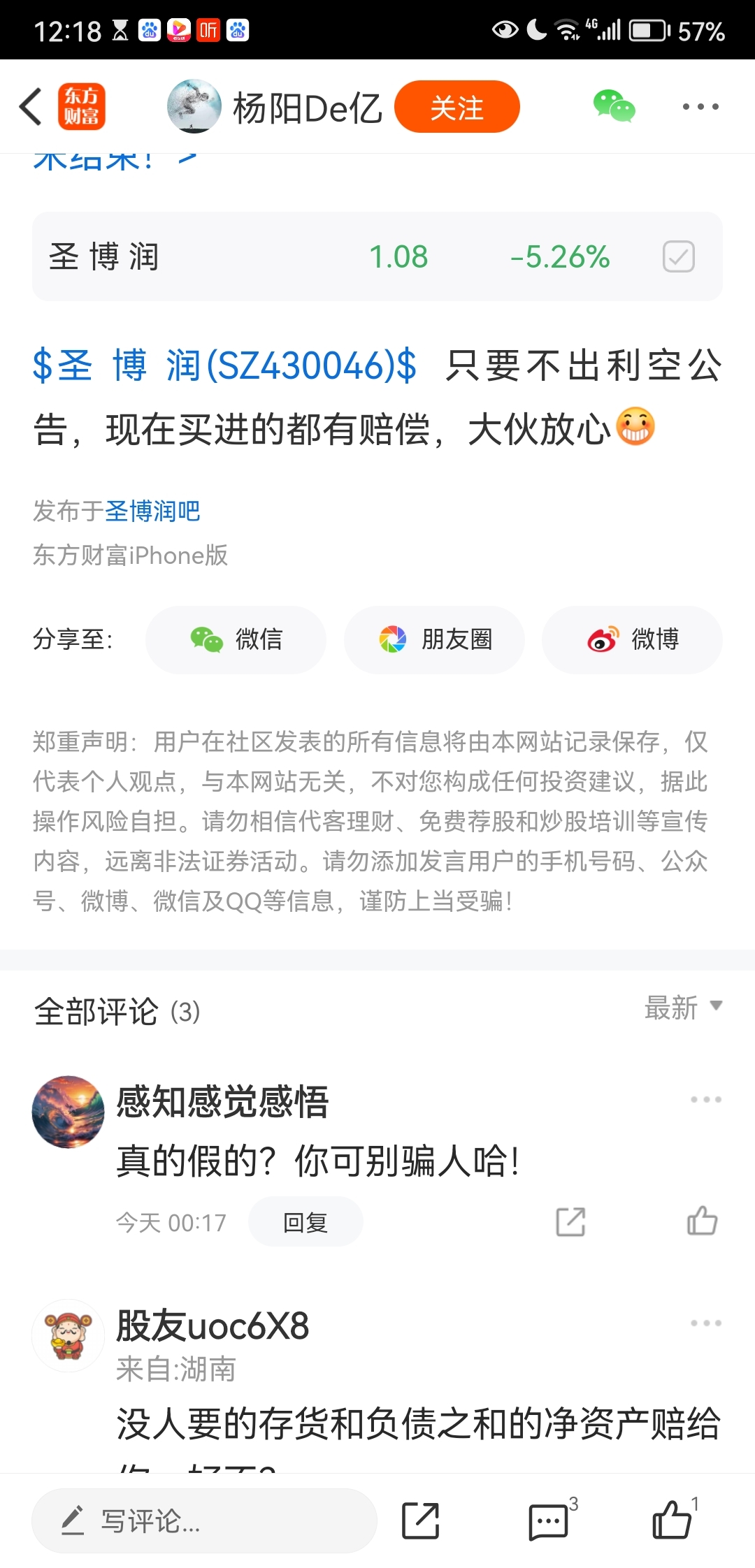 温馨提示: 1.根据《证券法》规定,禁止编造、传播虚假信息或者误导性信息,扰乱证券市场;2.用户在本社区发表的所有资料、言论等仅代表个人观点,与本网站立场无关,不对您构成任何投资建议。用户应基于自己的独立判断,自行决定证券投资并承担相应风险。《东方财富社区管理规定》