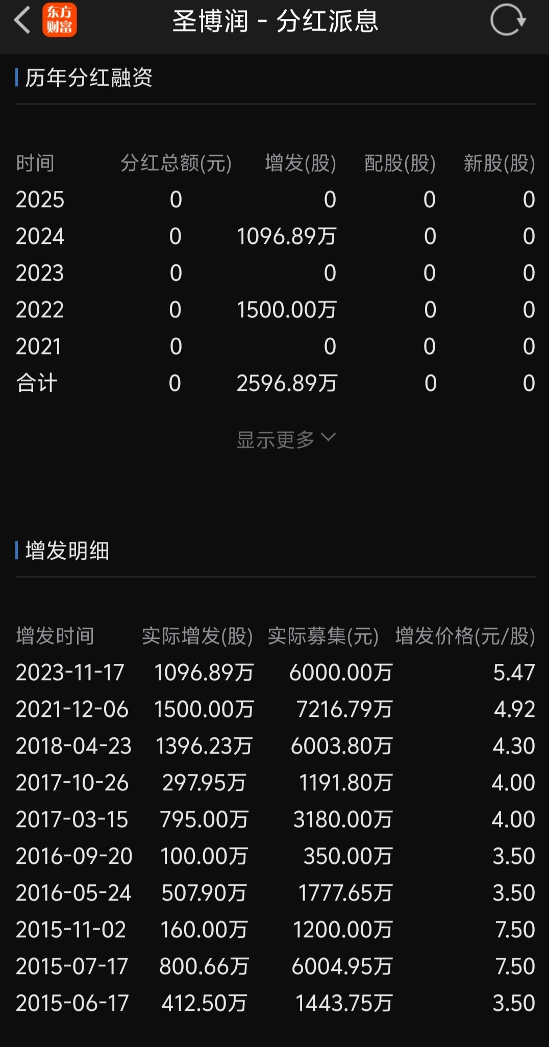 $圣 博 润(SZ430046)$ 融资总额34,368.74 万元(约3.44亿元),平均股价5.69 元。而现在股价才0.47元,?