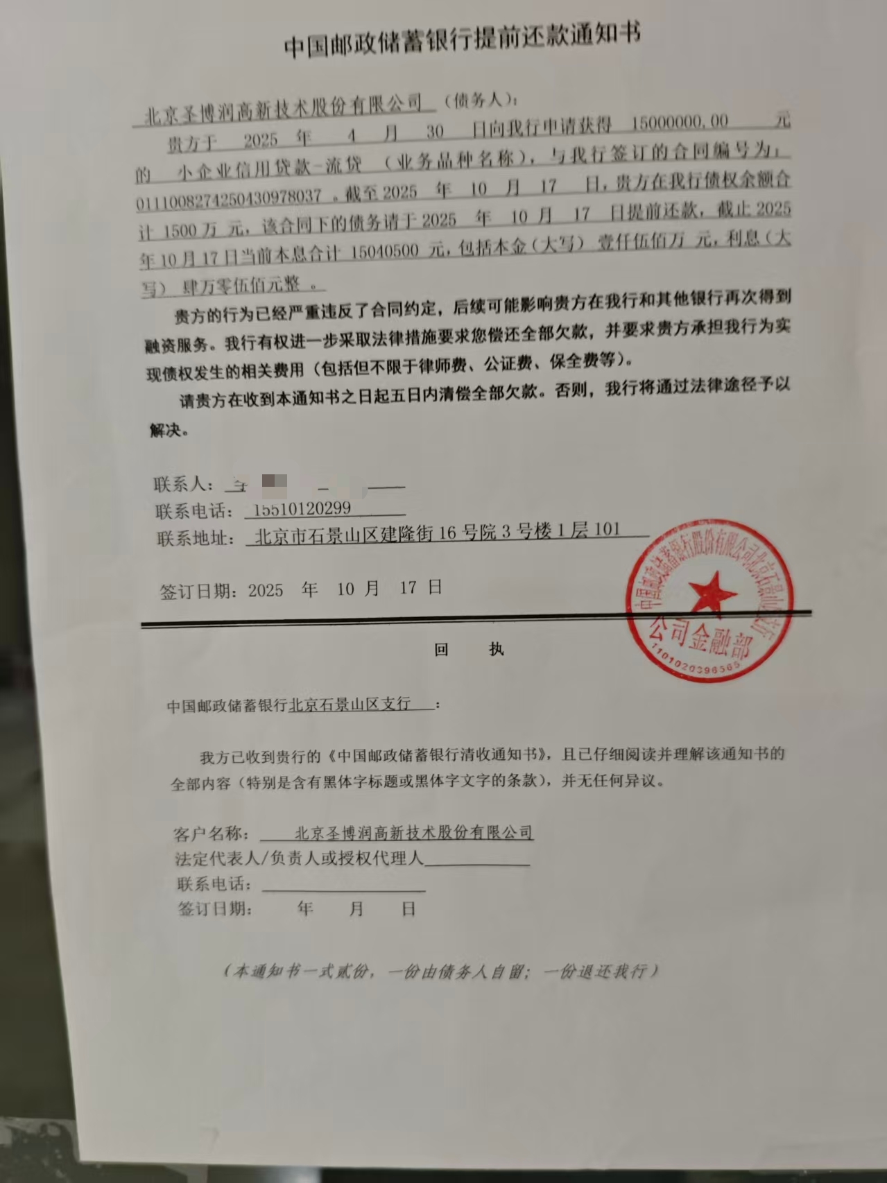 $圣 博 润(SZ430046)$ 10月中旬就已经被贴催款告示了。bank发现问题马上就会釜底抽薪!