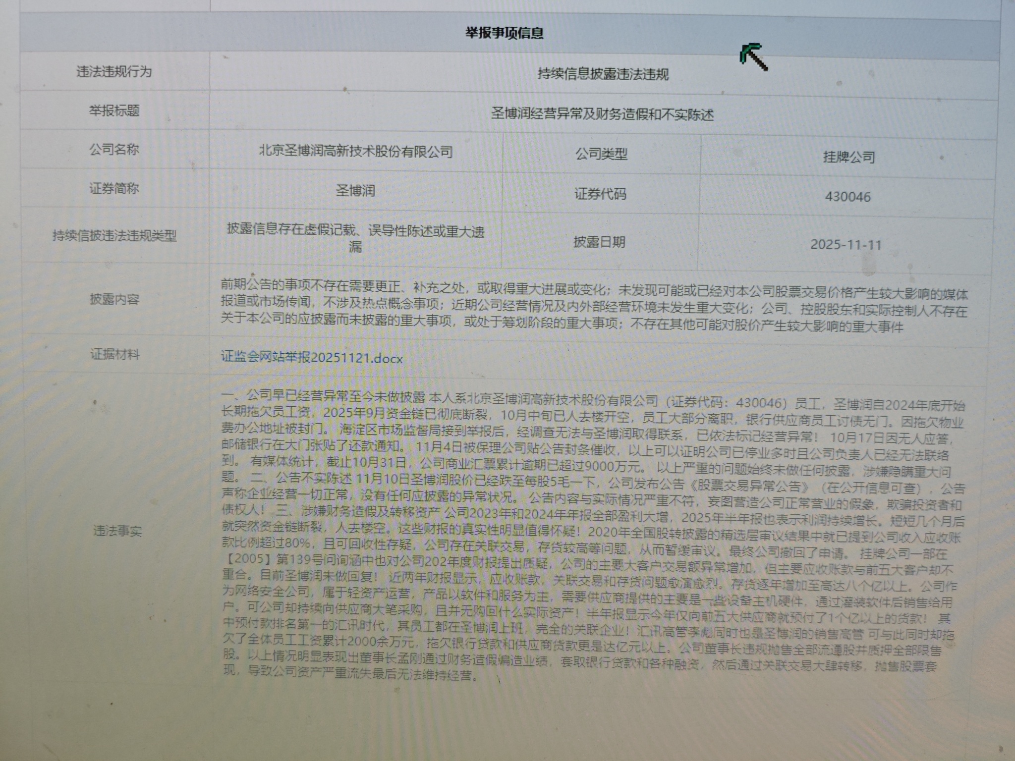$圣 博 润(SZ430046)$ 上周就在证监12386举报了,感觉西部证券提示的就是这些举报内容。大家举报,他盖不住了才会发公告。