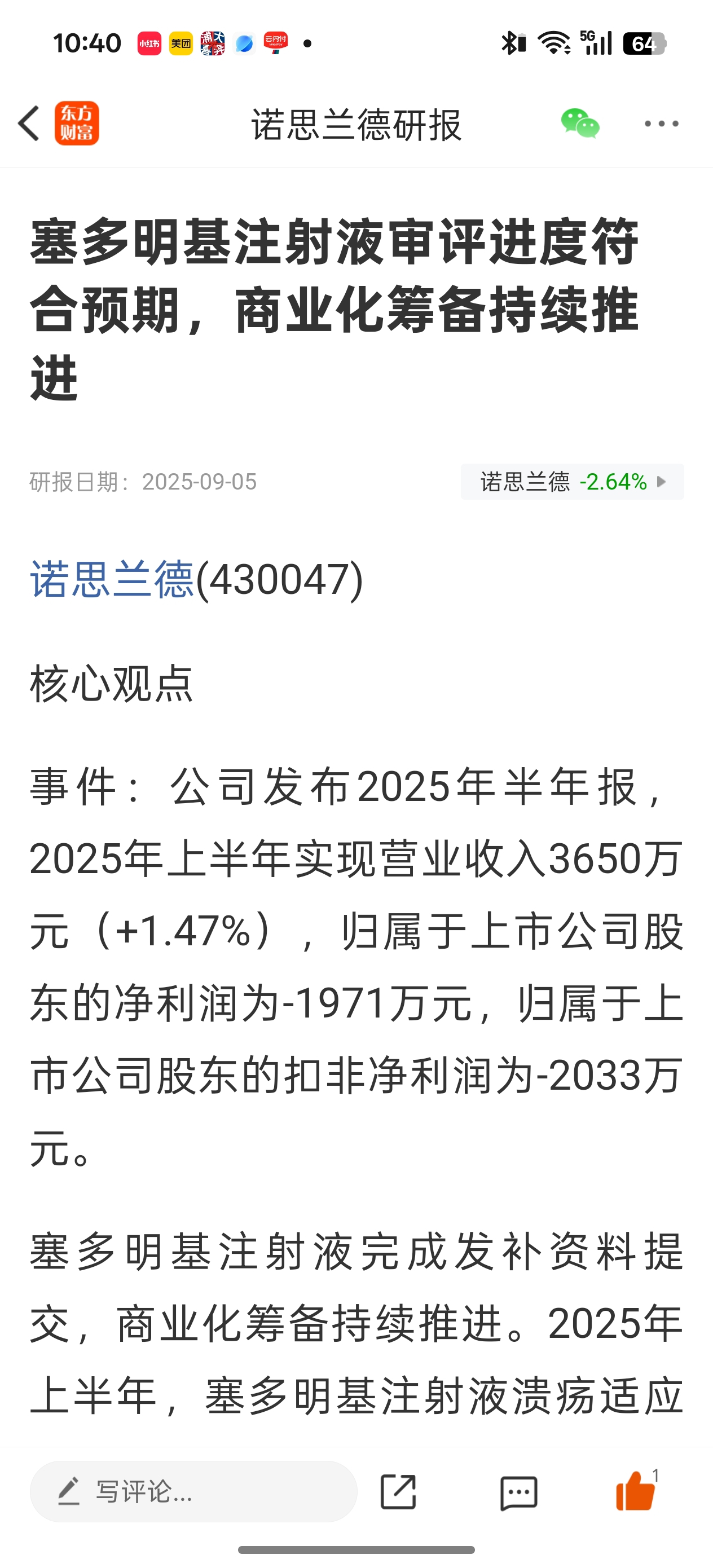 $诺思兰德(SZ430047)$ 大涨即将开始,已经递交了补充材料,。