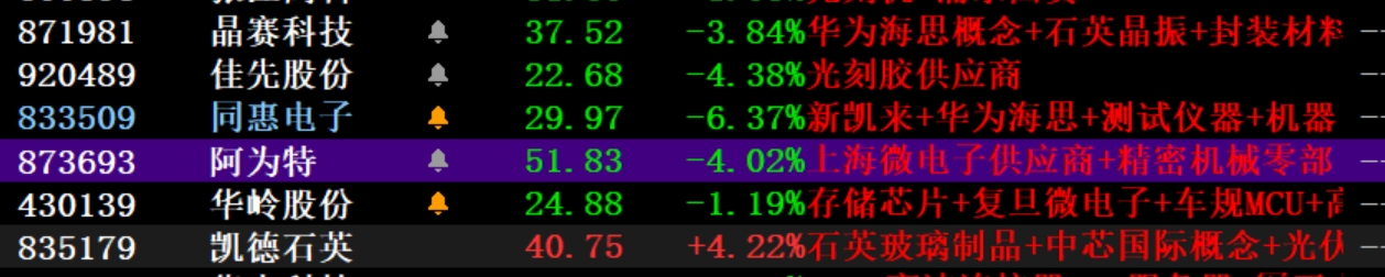 今日北交所芯片最强中芯国际供应商凯德石英华岭股份第二(绿),同惠电子倒数第一总体