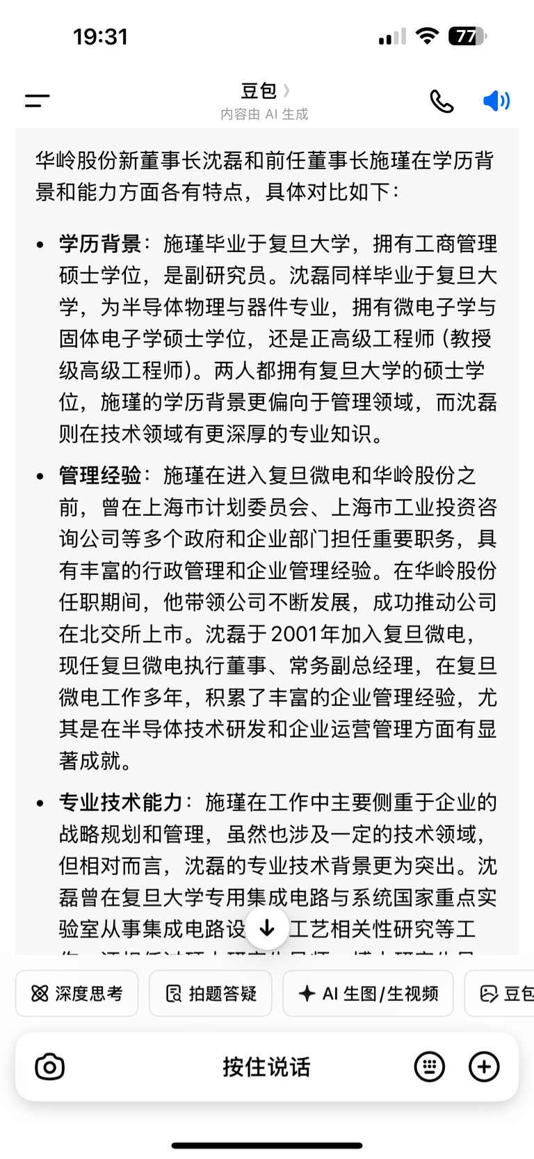 $华岭股份(SZ430139)$ 换董事长前任无负面消息后被换一般是利好,上海建工换董事长后连板,而且前任说白了就是 混退休的没啥创新技术含量,新董事长 年轻专研。