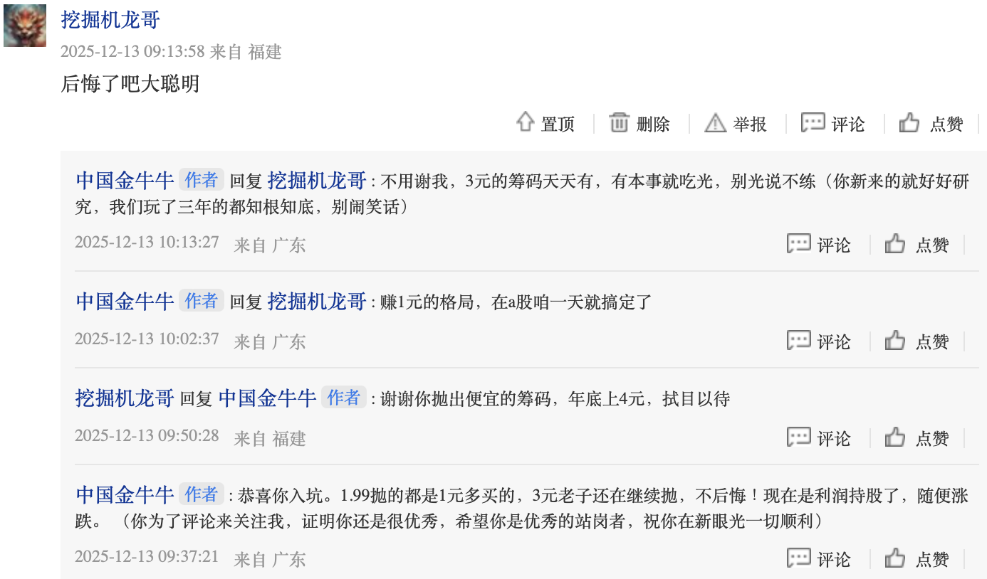 因为唱多的太寂寞了,问我是否后悔了,好胜心的趋势,一个人唱多的寂寞,因为所有人+股东都在跑,当然股吧就少人发言了,既然翻我出来,你就得接受唱空的贴。