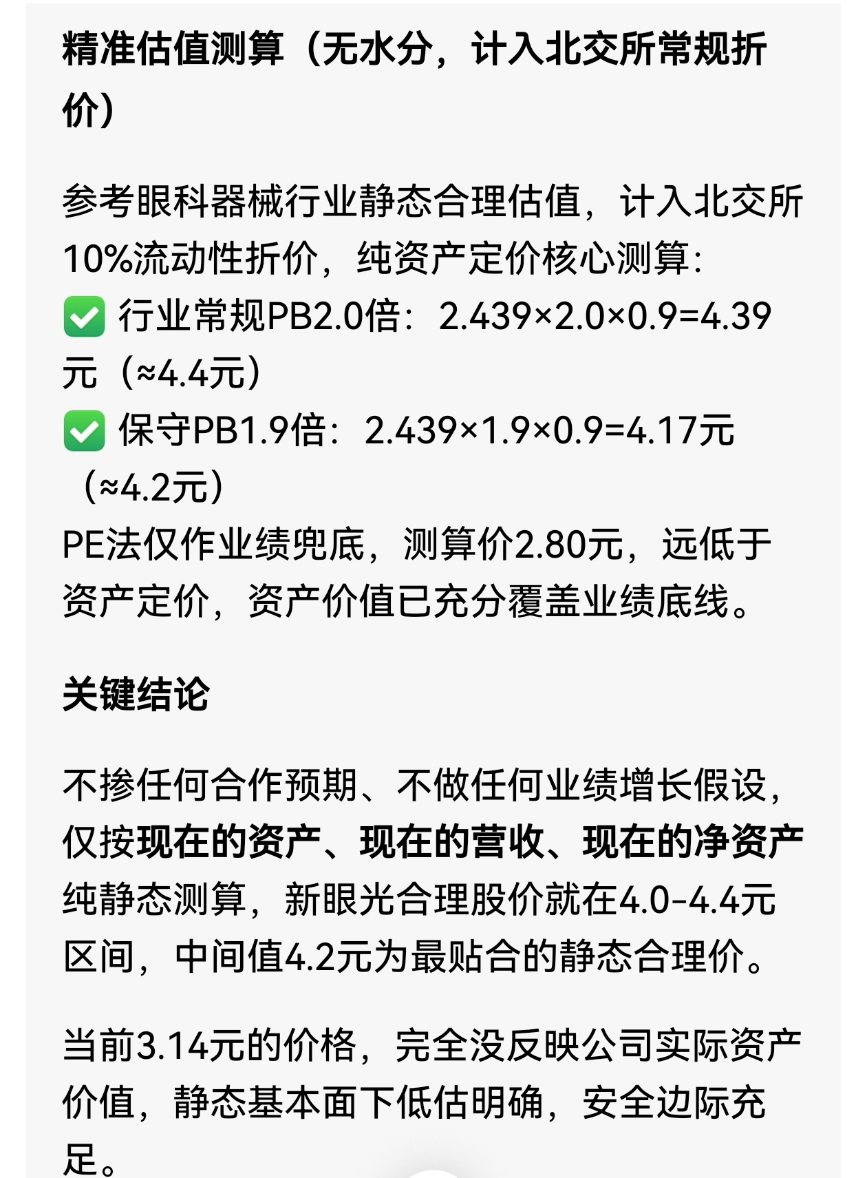 $新眼光(SZ430140)$ 新眼光静态估值梳理:当前股价明显低估,以下测算仅供参考