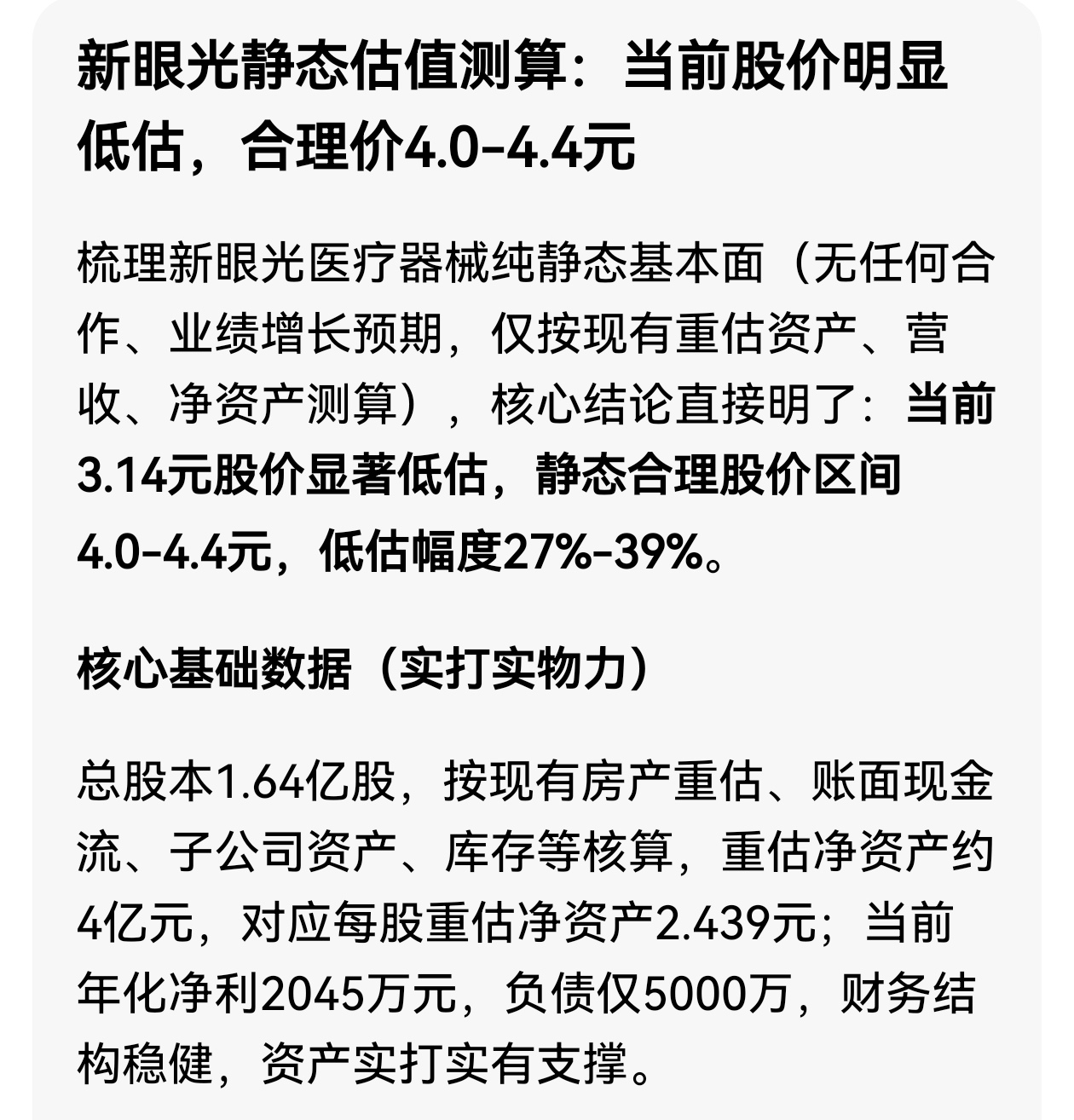 新眼光静态估值梳理:当前股价明显低估,以下测算仅供参考