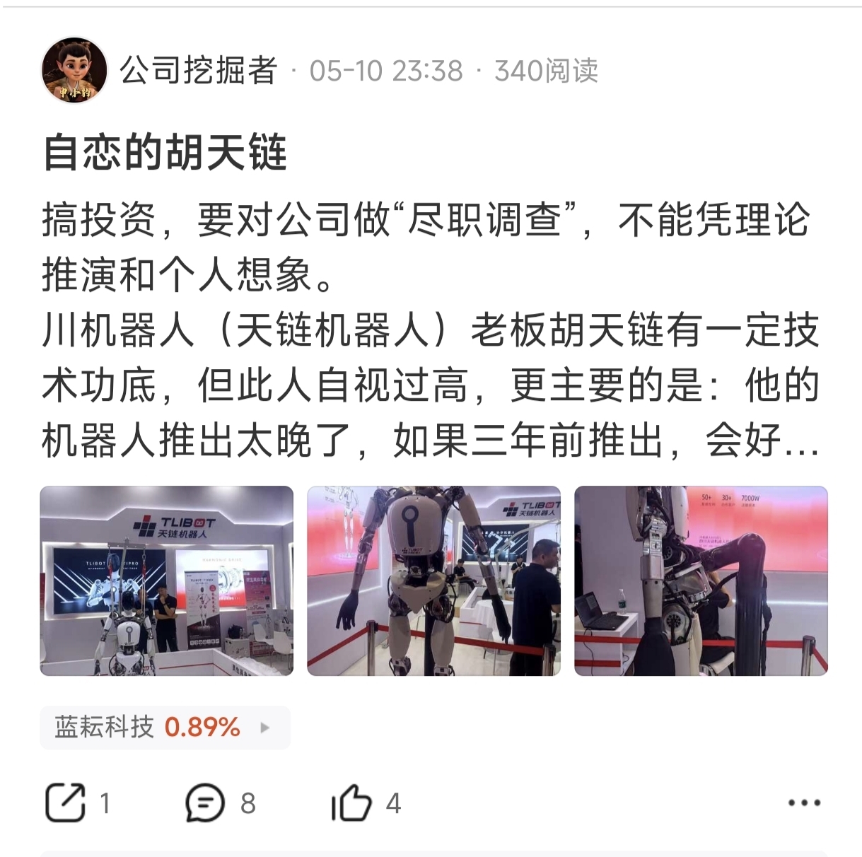 2025年5月,有股友到蓝耘股吧推荐川机器人,我发文反驳: