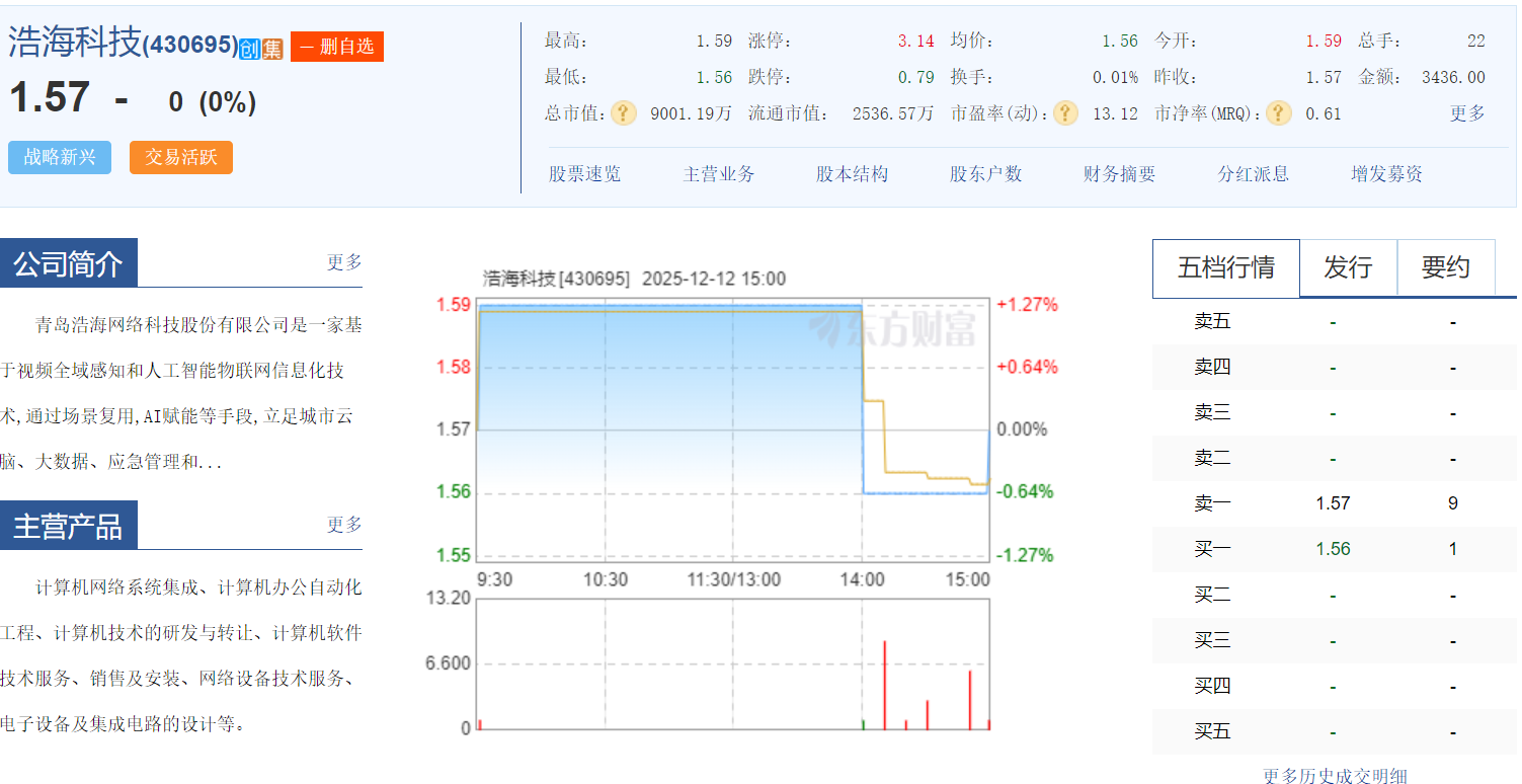 浩海科技上蹿下跳虽量不大!小幅震荡吸引买卖盘涌出!