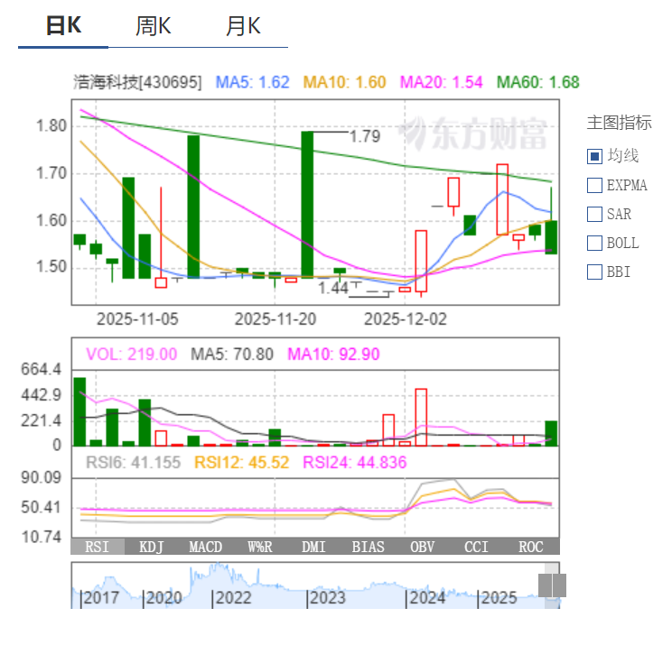 青岛浩海科技上涨压力巨大需要加大震荡或二次探底,不排除见一见1.44元!