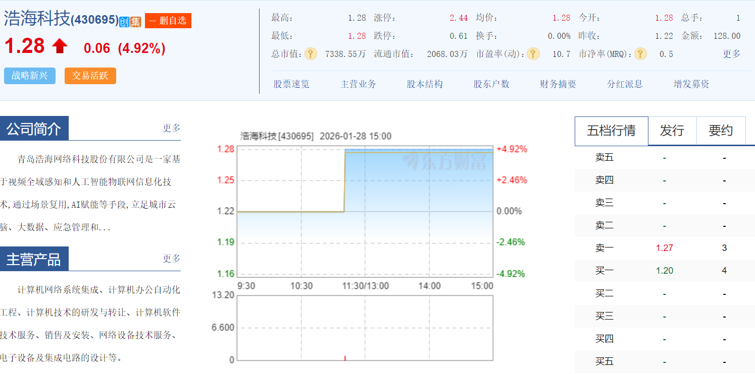 浩海科技百股大涨,低价抛盘消失难道就是广东投资者说的好心情!