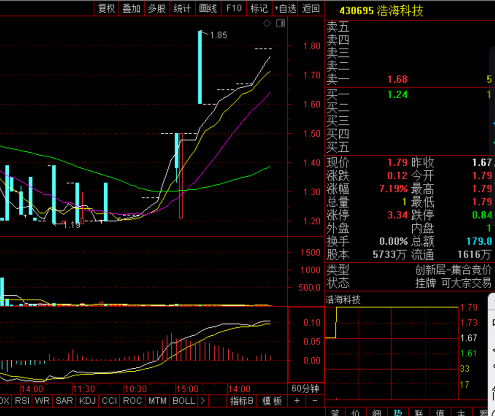 青岛浩海科技有破短期高点1.85元的可能性!大资金完全控盘,无量上涨意义不大!