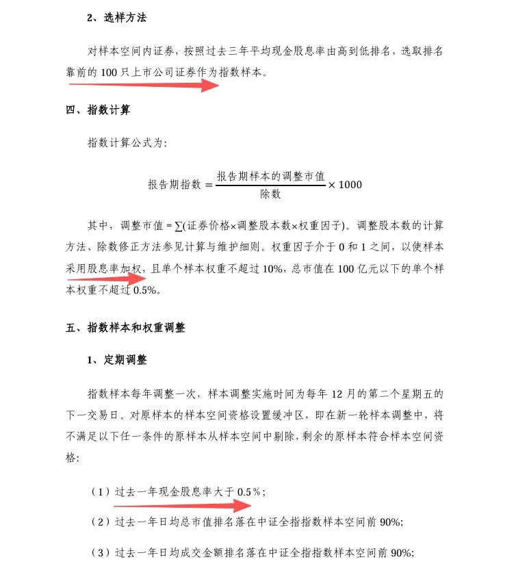 中证红利指数每年12月中旬调整一次成份股,其中涉及高抛低吸的主要是三个原则:
