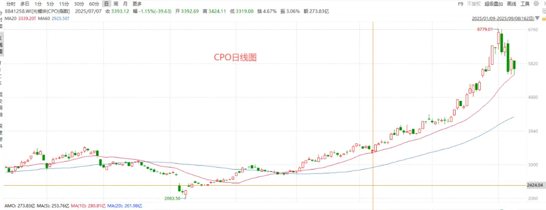 2.CPO板块的持续增长和估值投资界出现小范围争议,该板块出现较大跌幅,但尾盘跌幅收敛。该板块4月低点至9月初,5个月左右大涨229%,休息下很正常,目前71倍的市盈率与50%+的龙头业绩增速也基本匹配,泡沫不算大。