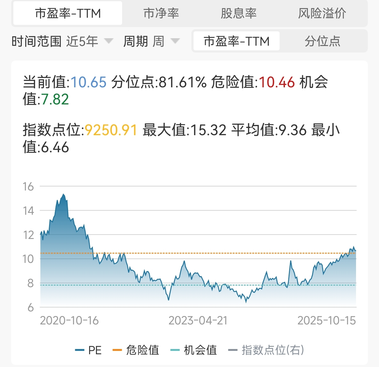 截至2025年10月16日,国企指数的PE-TTM为10.65倍,处于近5年分位81.6%