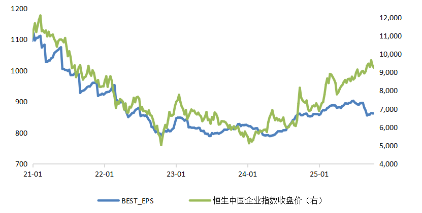 图:恒生国企指数EPS预测呈企稳回升态势。(数据来源:Wind,截至2025/10/15)